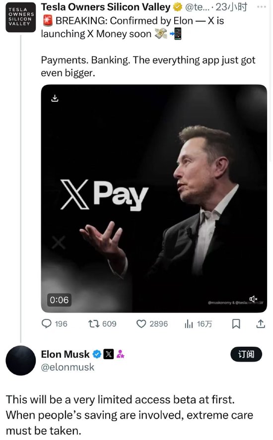 4、马斯克证实X Money将于2025年推出之前进行测试