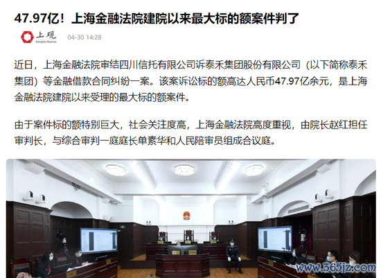 比如,总标的额47.97亿元(信托本金39.95亿),号称2021年“上海金融法院建院以来最大标的额的案件”——四川信托诉泰禾集团借款纠纷案。